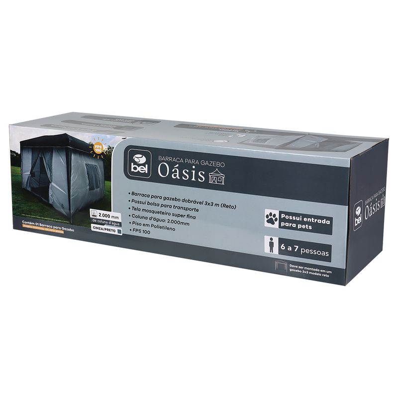 VerãoCampingTenda GazeboAcessóriosBarraca Oásis Para Gazebo Dobrável 3m x 3m Cinza e Preto Bel