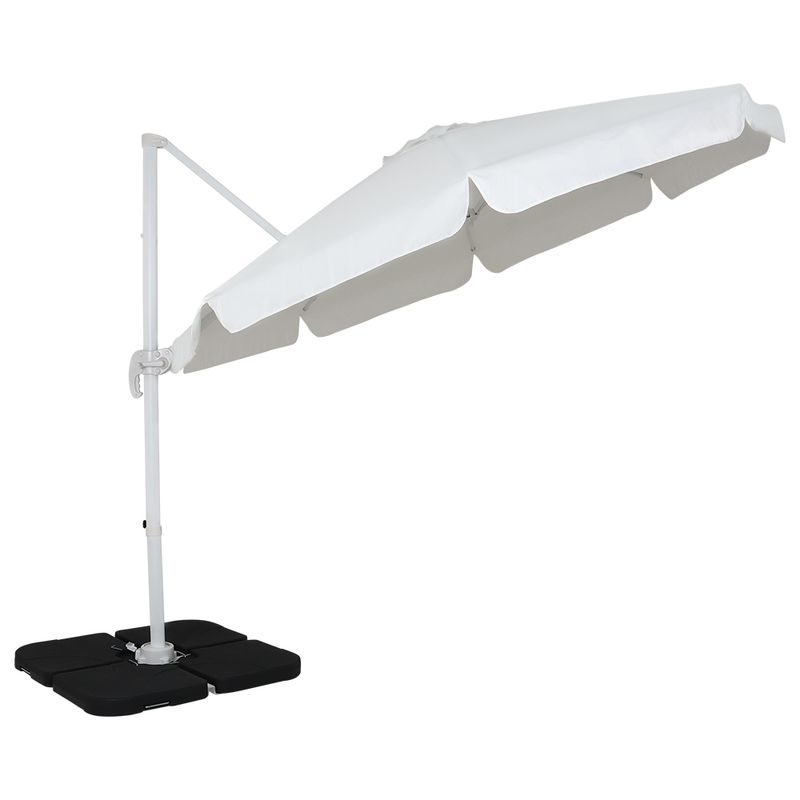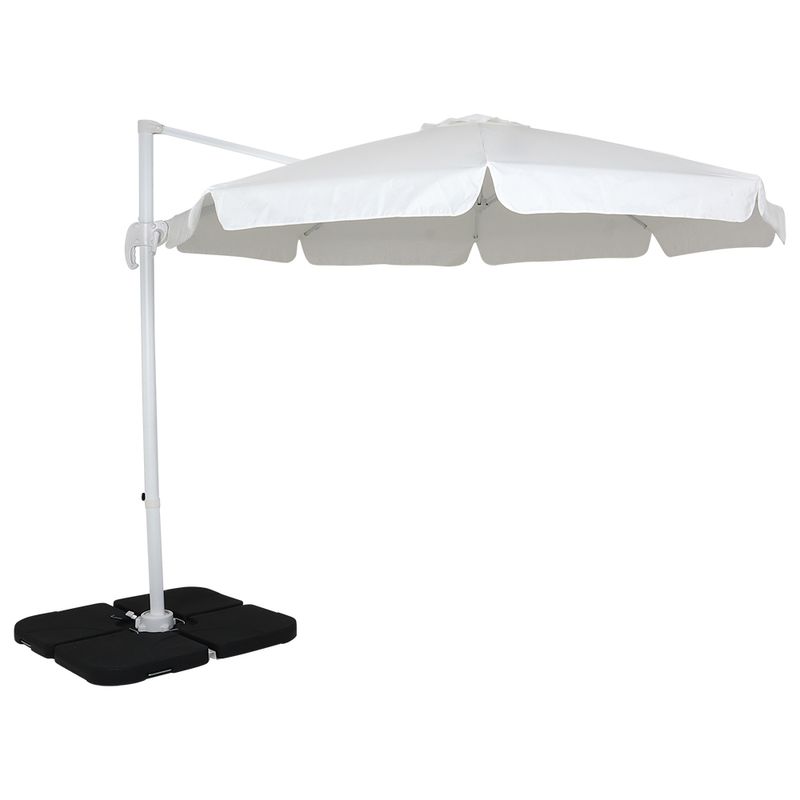 Ombrellone Suspenso Articulado Giratório Sicília 3 metros Branco + Base em ABS 50 Litros Preta Bel